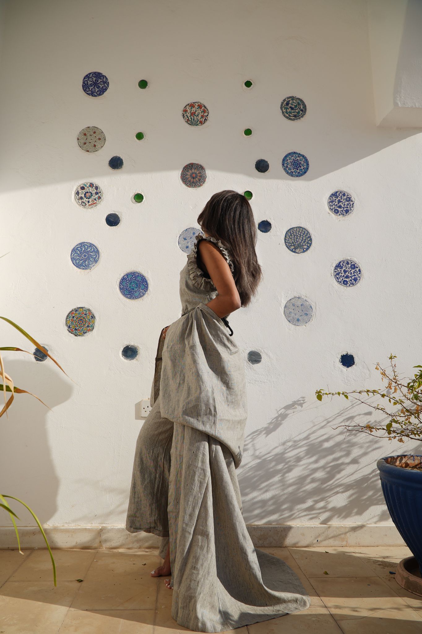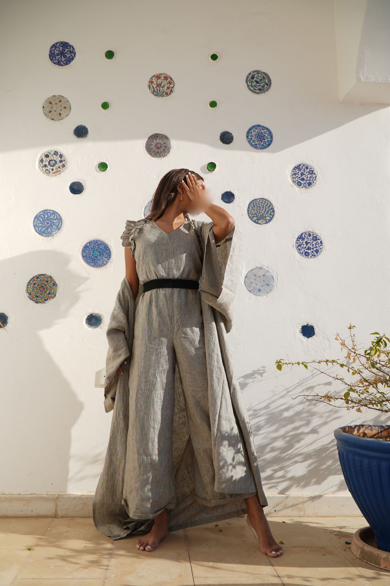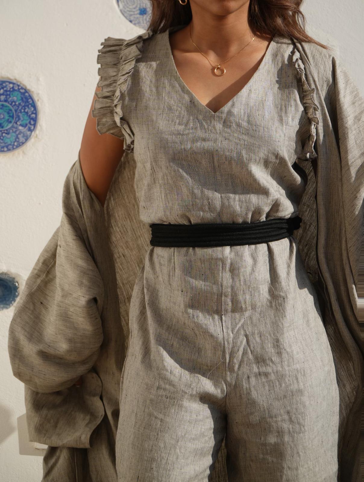 Linen Jumpsuit with Bisht & Belt